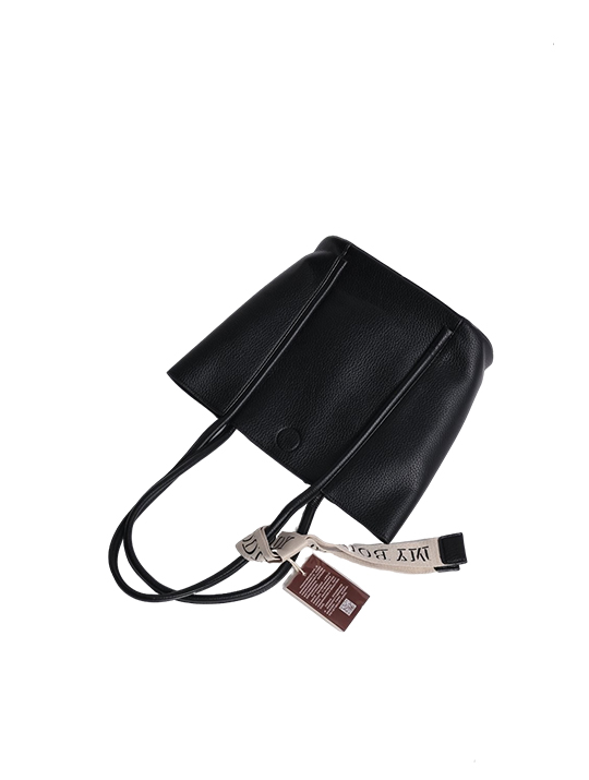 Design Accent: The front strap features a fabric ribbon tied to the handle with bold "MY BODDY" typography, adding a modern, branded touch to the classic silhouette.
