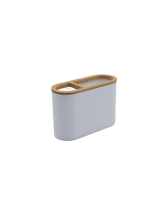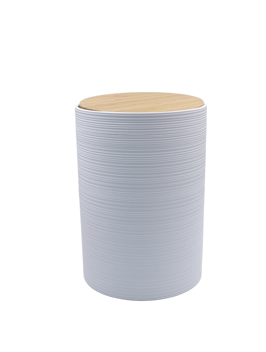 Ceramic Bathroom Accessories Set with Bamboo (7-Piece)