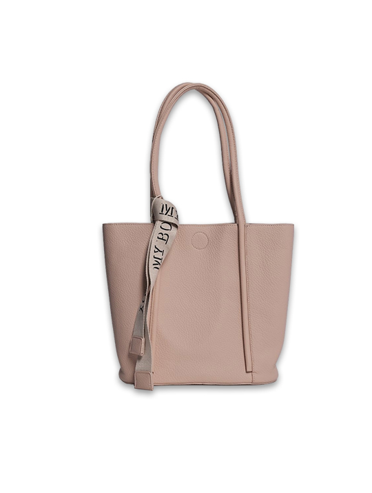 • Design Accent: The front strap features a fabric ribbon tied to the handle with bold "MY BODDY" typography, adding a modern, branded touch to the classic silhouette.