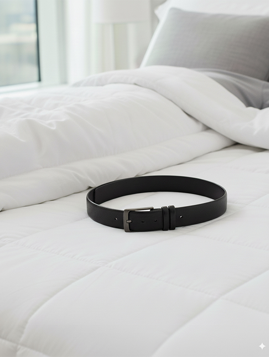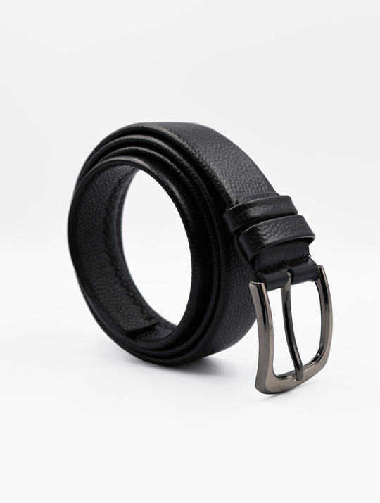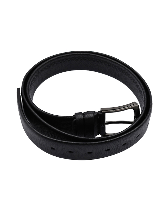 Premium Pebble Leather Dress Belt (Black)
